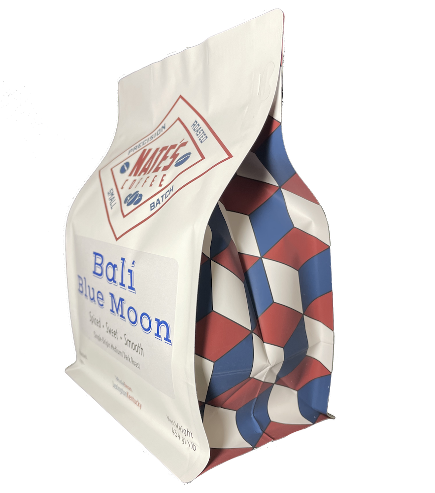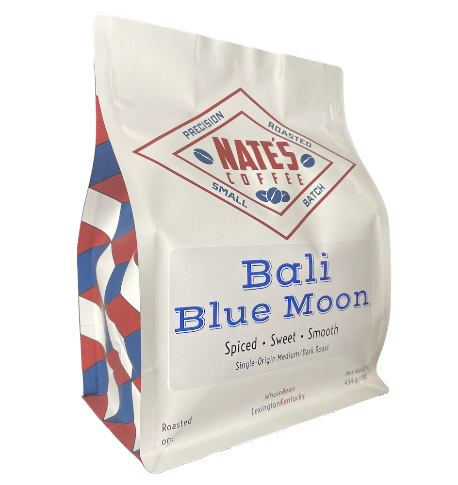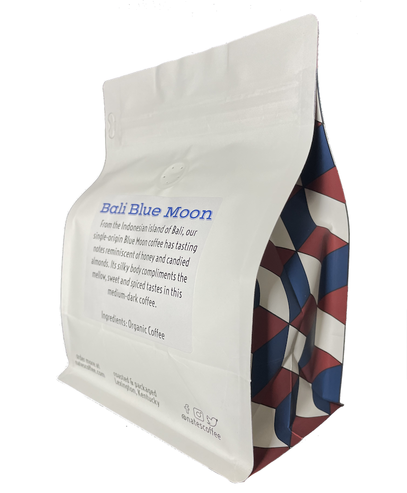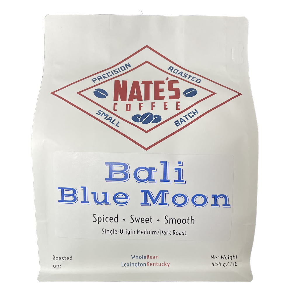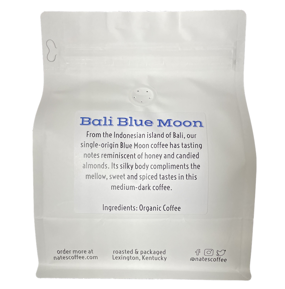 Our single-origin Bali Blue Moon roast has notes reminiscent of honey and candied almonds. Sourced from the beautiful Indonesian island of Bali, this coffee has a silky body, which compliments the mellow, sweet & spicy taste of this medium-dark coffee. Because of these tasting notes, it also makes a perfect coffee to use in our Tis the Season Blend. Read more about the process of making a new blend on our blog.