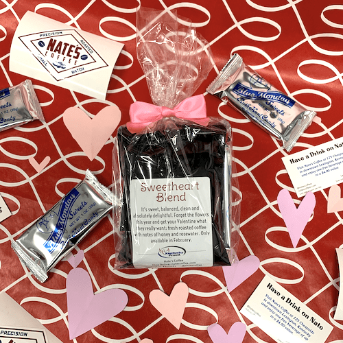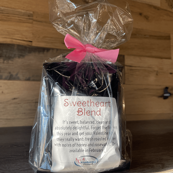 These fun gifts include 100 grams each of three of our favorite coffee roasts (including the Sweetheart Blend), a Kentucky Blue Monday Candy (from local business Ruth Hunt), a sticker, and a Nate’s Coffee coupon!